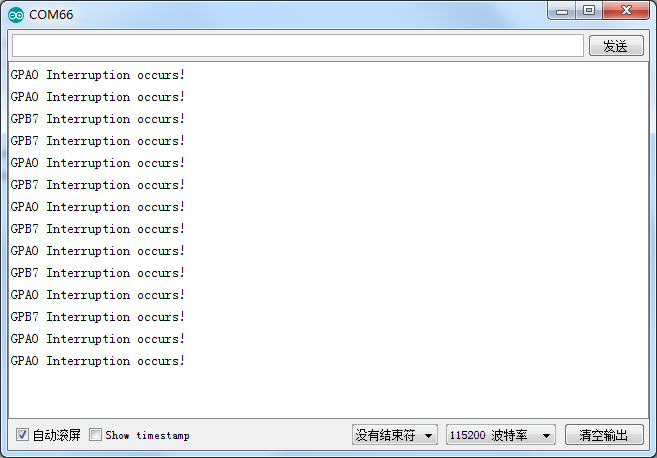 Appuyez sur le bouton sur PAO ou PB7, le résultat suivant sera imprimé sur le port série.