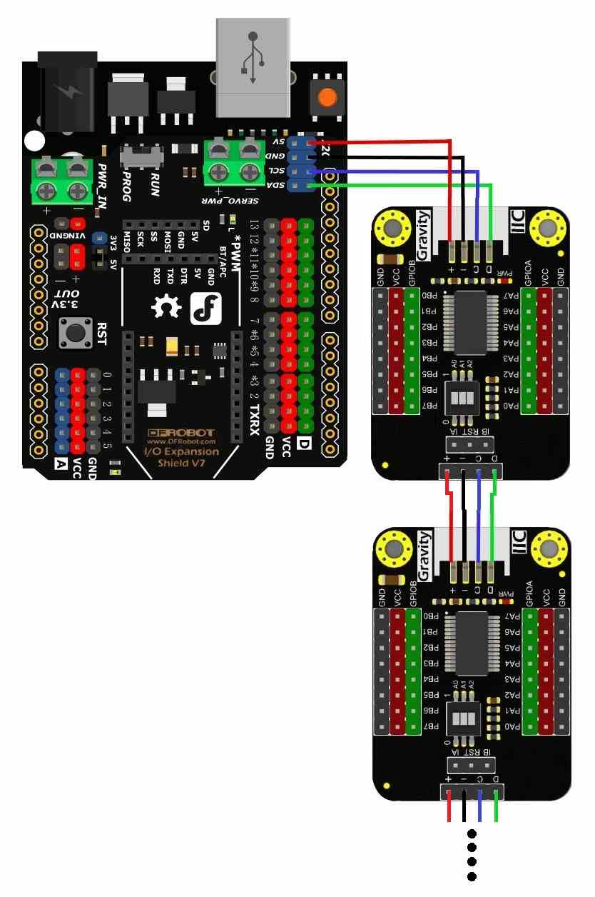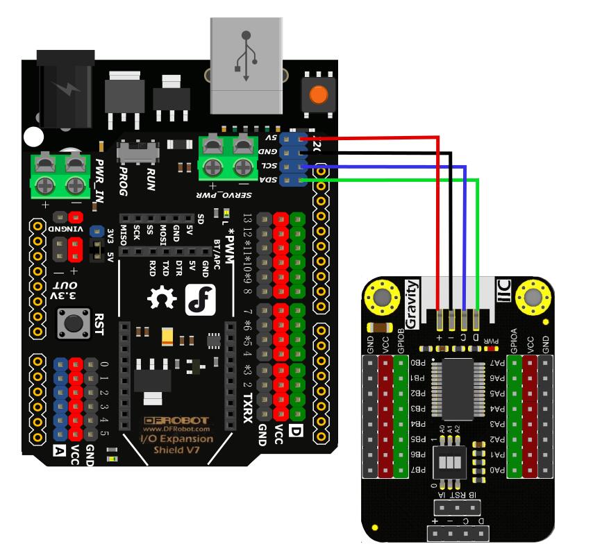 Il s'agit d'une carte d'extension IO basée sur MCP23017 qui fournit 16 ports IO supplémentaires pour votre microcontrôleur. Il peut être configuré pour 8 adresses différentes, ce qui signifie que 8 modules peuvent être connectés via deux bus IIC pour atteindre jusqu'à 128 extensions IO. Ce module est une excellente solution au problème d'insuffisance d'E/S dans des applications telles que les robots et les médias interactifs.