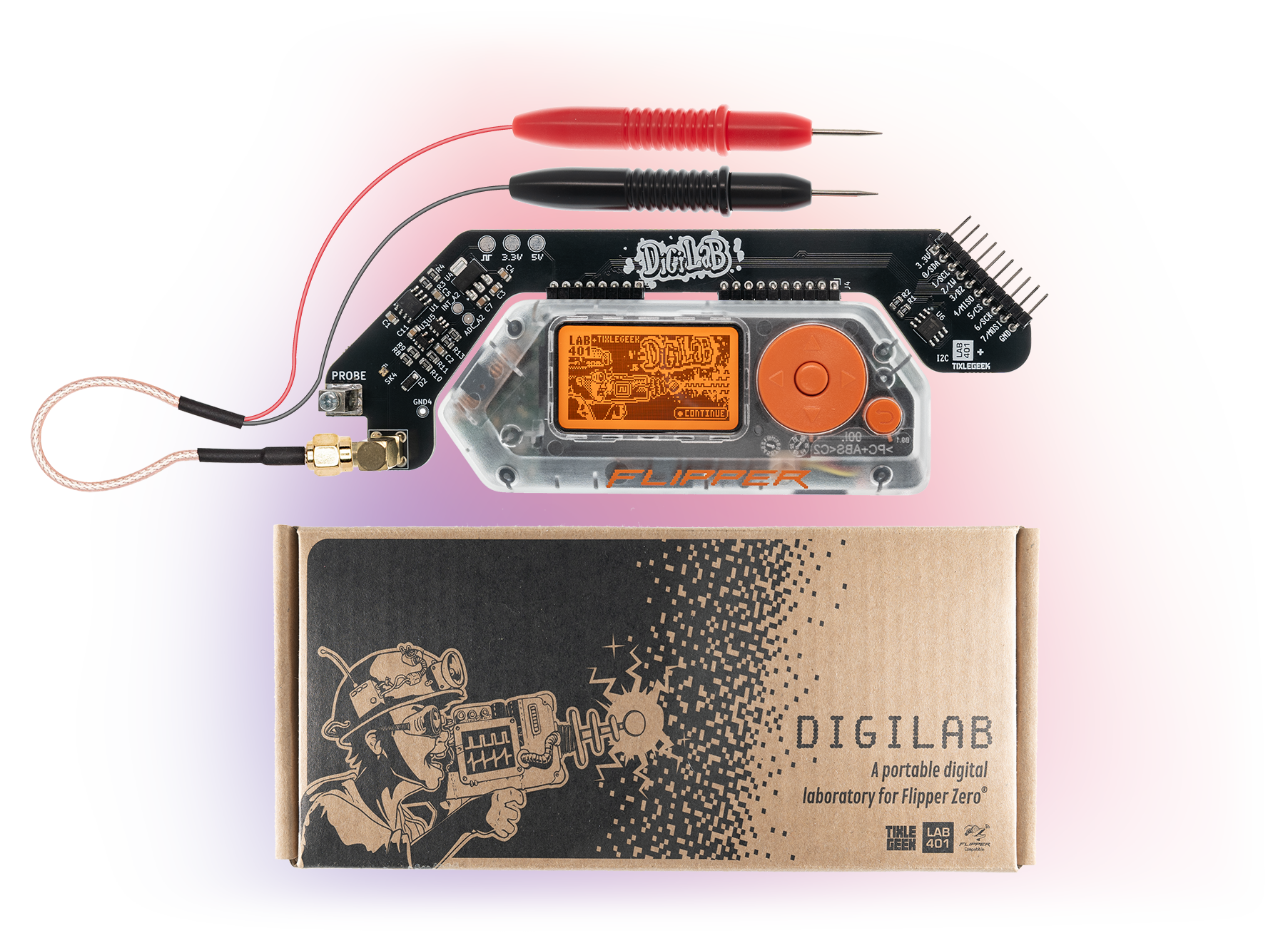 Le DigiLab de Lab401 par tixlegeek est un accessoire Flipper Zero® qui introduit une nouvelle façon d'explorer l'électronique. Conçu pour être le premier outil que vous utilisez lorsque vous développez, déboguez, bricolez ou explorez l'électronique numérique.