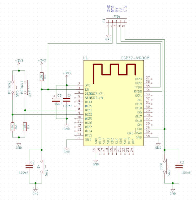 - -Utilisation d'une tension régulée de 3,3 V, connectée aux broches 3,3 V et GND. Soyez très prudent avec cela: ne dépassez pas la limite de 3,3V, ou votre module ESP32 sera endommagé.