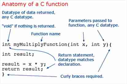 void setup(){ Serial.begin(9600); } void loop() { int i = 2; int j = 3; int k; k = myMultiplyFunction(i, j); // k now contains 6 Serial.println(k); delay(500); } int myMultiplyFunction(int x, int y){ int result; result = x * y; return result; }