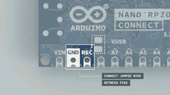 - -Placez un cavalier entre les broches REC et GND sur la carte, puis appuyez sur le bouton RESET . Cela ouvrira le stockage de masse.