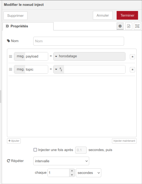 Date et heure dans Node red