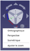 • Le sélecteur en bas à droite permet de choisir le type de perspective de représentation des objets (Avec ou sans fuyantes), et ’ajuster le zoom au mieux. (Utile lorsque l’on a perdu ses objets).