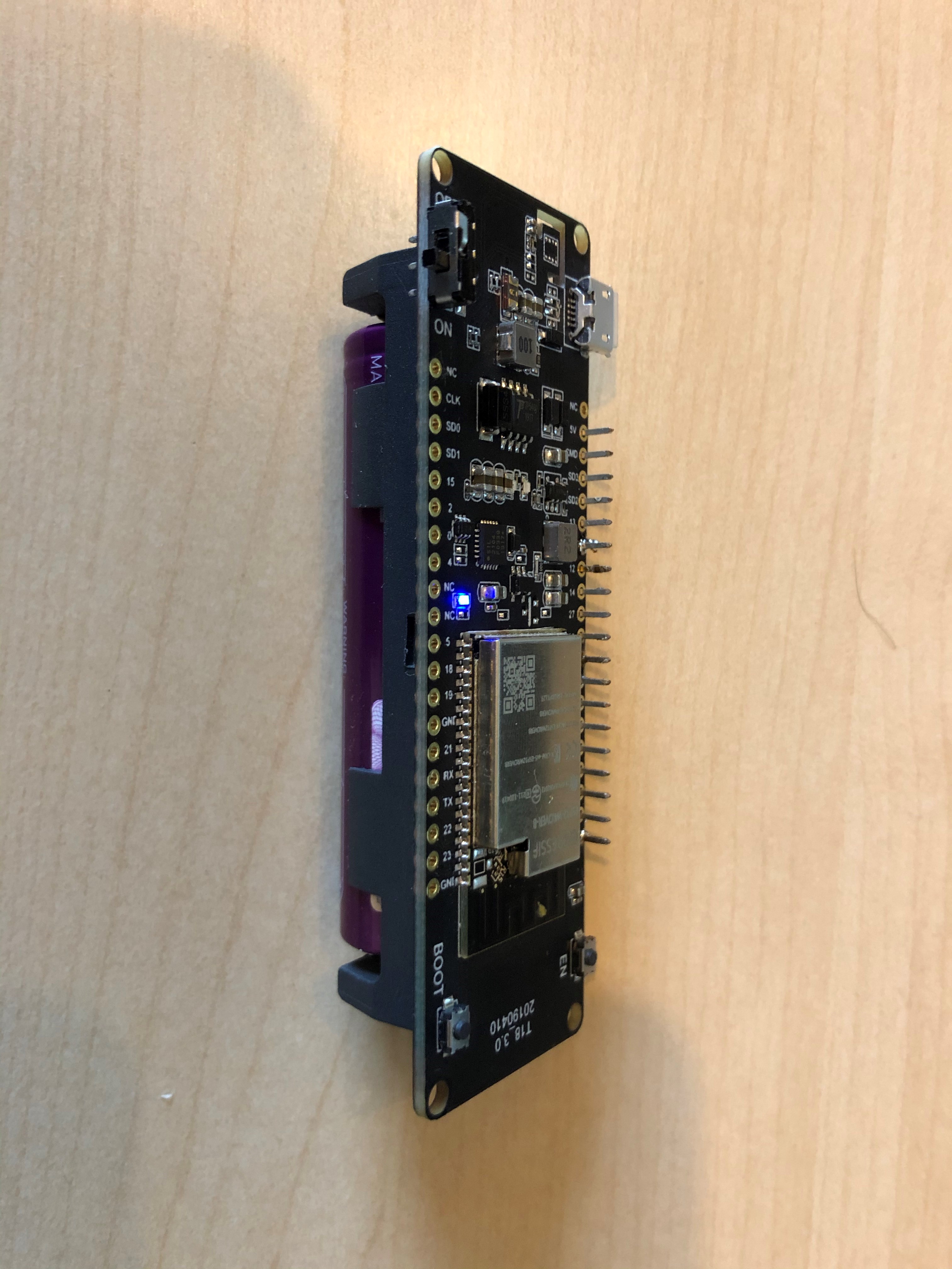 Dans une version future, la pile sera branchée également sur une GPIO de l'ESP32 afin de mesurer le pourcentage de charge et de l'envoyer également comme donnée afin d'anticiper le changement de cette pile.