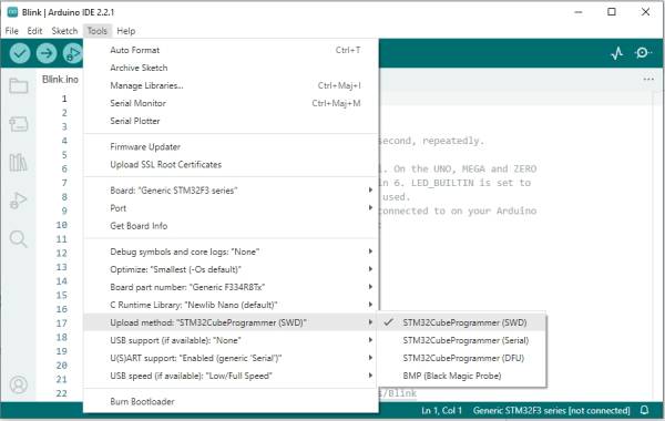 Premiers pas avec STM32 Nucleo dans Arduino IDE - LED clignotante