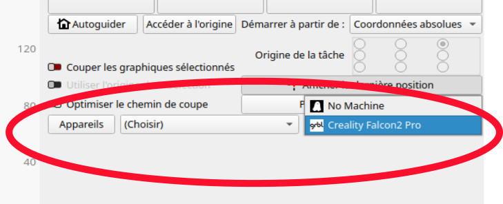 -5- Et au moment de la connexion du PC avec la Laser , en plus du port USB ( COMx ) , choisisez la Creality Falcon2 Pro