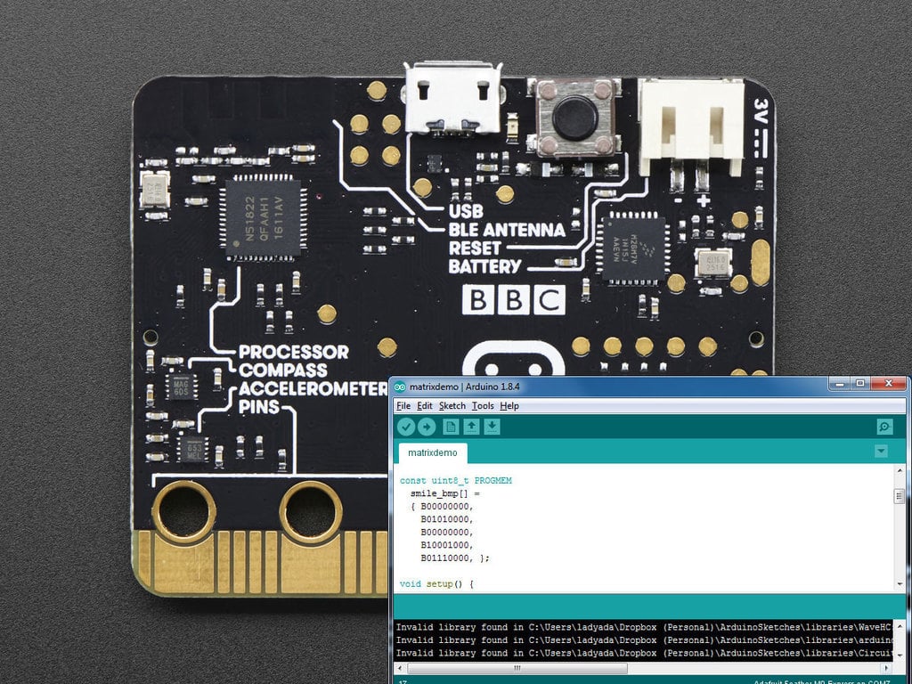 Saviez-vous que l'IDE Arduino peut être utilisé pour programmer le micro:bit ? Vous disposez désormais d'une autre façon d'utiliser cette carte géniale ! Apprenez à configurer Arduino pour programmer votre micro:bit, faire clignoter quelques LED, lire le capteur de température interne, envoyer et recevoir des données via Bluetooth - et même enregistrer des données sur Adafruit.IO !