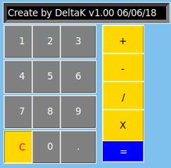 BC = Button(fen, text="C", command=ButtonC, width=3, height=2, bg="gold", fg="red", relief=RIDGE).place(x=10, y=190) # Boutton C (Clear)