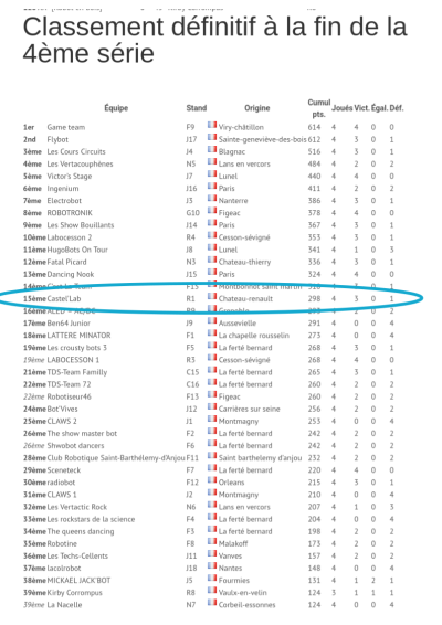 Castellab Senior ( PinMode) : 82 eime sur 120 equipes Senior