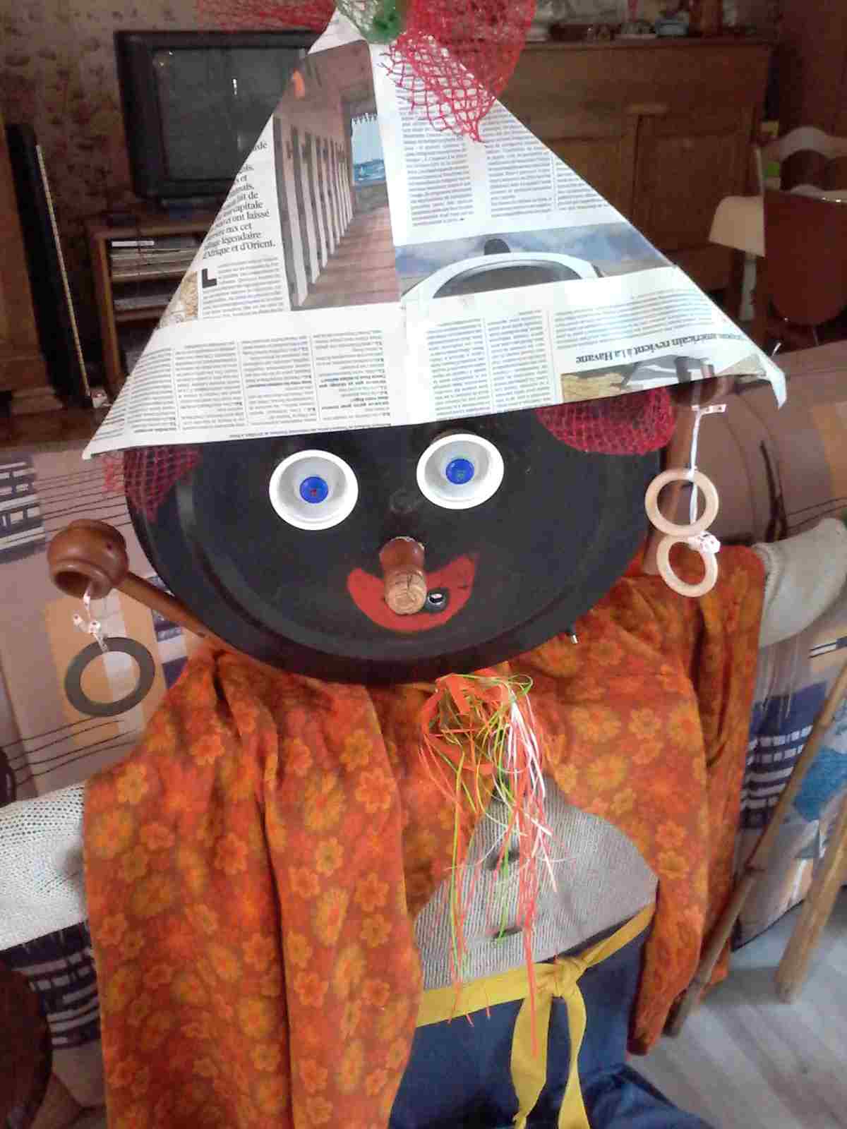 Bon d'accord , on anime que les yeux par des LEDS rouge et verte et un détecteur de distance qui active une musique suivant la proximité de la personne. Je vais ajouter un petit servo-moteur qui va montrer un petit drapeau pour faire peur aux oiseaux ( enfin j’espère….)