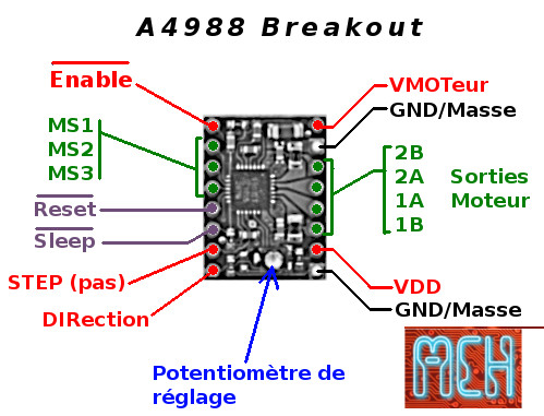 Pour des informations plus détaillées, vous pouvez vous référer à la [http://df.mchobby.be/datasheet/A4988.pdf fiche technique du A4988] (pdf).