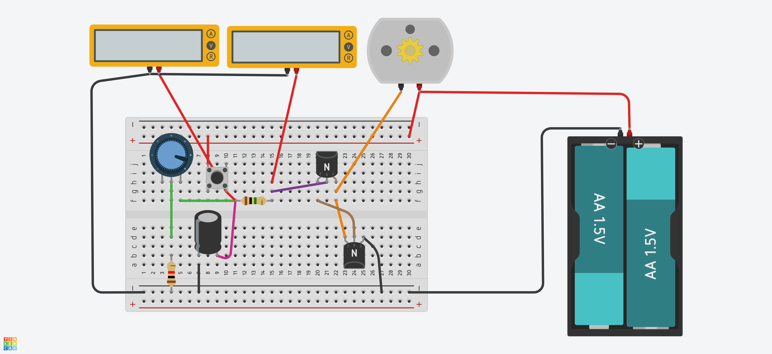 Au fur et à mesure que le condensateur (C1) se décharge, la tension à ses bornes diminue. Elle commence initialement à 3 volts et, au fur et à mesure qu'il se décharge,descend à zéro volt. Tant que cette tension est supérieure à 1,4 volt, le transistor Darlington Pair est activé et le moteur aussi. Lorsque la tension sur la base descend en dessous de 1,4 volt, le transistor s'éteint et le moteur aussi.