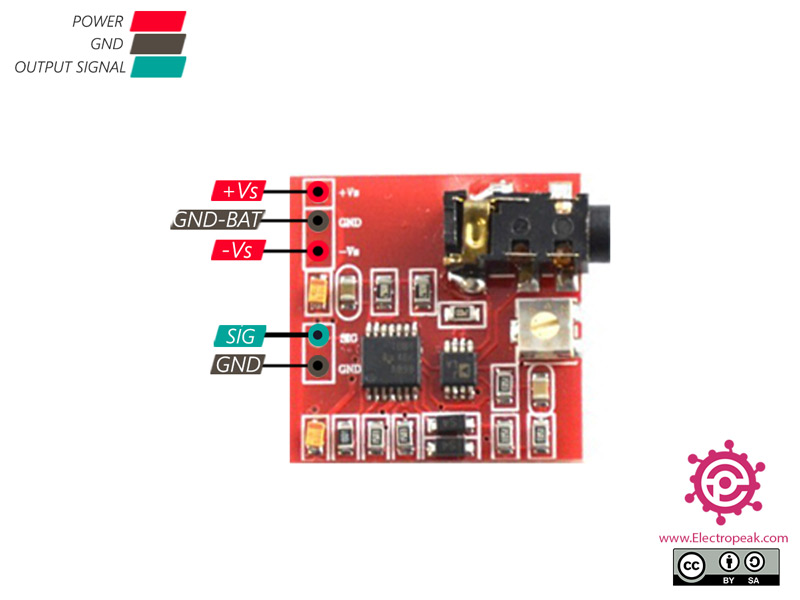- Un ensemble à 2 broches qui comprend les bornes de signal et GND. Il sert à interfacer la carte avec le microcontrôleur.