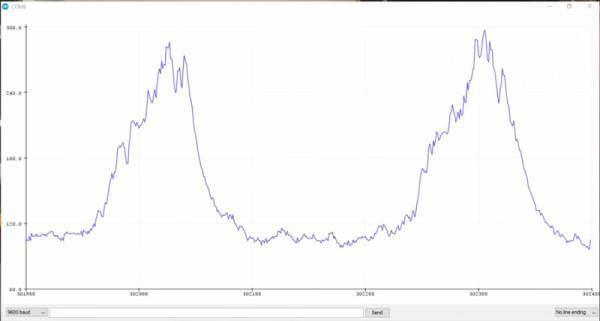 void setup() { Serial.begin(115200); } void loop() { Serial.println(analogRead(A0)); }