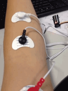 • Enfin, fixez les trois électrodes à votre muscle et gardez une distance entre chaque électrode.