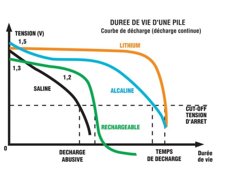 | Tension de décharge minimale | 2,7 V à 3,0 V |