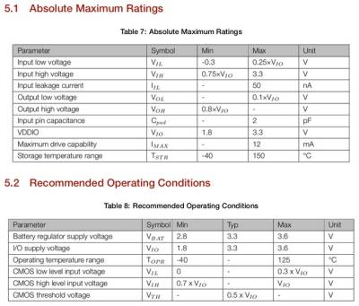 Le MCP1725T-3302E / MC s'adapte parfaitement à l'ESP32 en combinaison avec des batteries ayant une tension maximale supérieure à 3,6V. Les tableaux suivants présentent les principes fondamentaux de la fiche technique LDO et expliquent pourquoi ces principes fondamentaux correspondent parfaitement à l'ESP32.