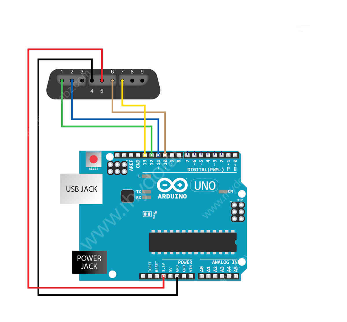 Le contrôleur sans fil PS2 communique avec Arduino en utilisant un protocole qui est essentiellement SPI. La station de jeu envoie un octet en même temps qu'elle en reçoit un (duplex intégral) via une communication série. Il y a une horloge (SCK) pour synchroniser les bits de données sur deux canaux : DATA et CMD. De plus, il existe un canal “Attention” (ATT) qui indique à l'esclave s'il est “actif” ou non et doit écouter les bits de données traversant le canal CMD, ou envoyer des bits de données via le canal DATA (raisonnablement, un seul périphérique esclave doit être actif à la fois). La PlayStation 2 l'utilise en fait plus une ligne supplémentaire qui ne fait pas spécifiquement partie du protocole SPI - une ligne “Acknowledge” (ACK).