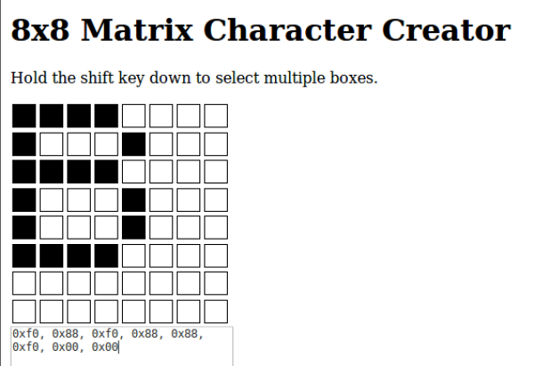 Le but c'est de faire fonctionner la matrice 4 fois 8×8 en un bloc , si l'on prend le même programme avec les 4 matrices 8×8 , on obtient ceci :