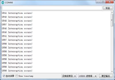 Appuyez sur le bouton sur PAO ou PB7, le résultat suivant sera imprimé sur le port série.