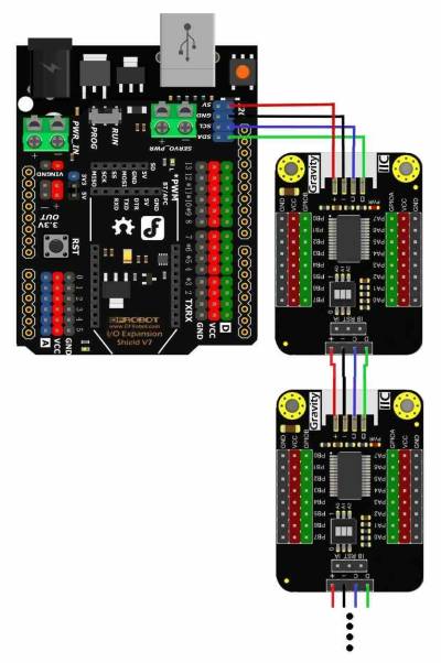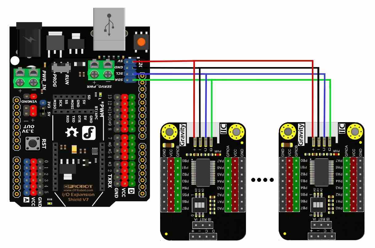 DFRobot_MCP23017 mcp027(Wire, /*addr =*/0x27);//constructor, change the Level of A2, A1, A0 via DIP switch to revise I2C address within 0x20~0x27