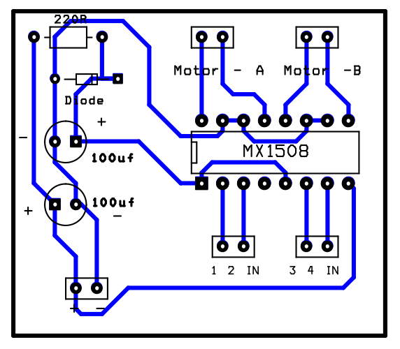 Le MX1508 est un pilote de moteur à double pont complet qui permet de connecter simultanément deux moteurs à courant continu.