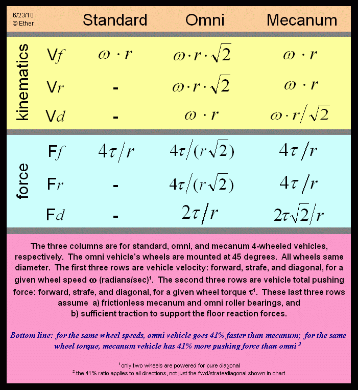 • Conduire les 4 roues à la même vitesse dans la même direction peut conduire à un mouvement d'avance / recul, car les vecteurs de force longitudinale s'additionneront, bien que les vecteurs transversaux s'annulent.