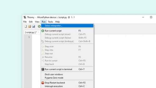 - -Dans l' éditeur Thonny , accédez à Exécuter > Sélectionner un interprète .