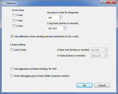 La fonctionnalité ne prend pas effet immédiatement. Si vous modifiez cette valeur, vous devez cliquer sur OK, puis quitter Grbl Controller et le redémarrer. Ceci est dû à une anomalie avec la réinitialisation de Log4Qt.
