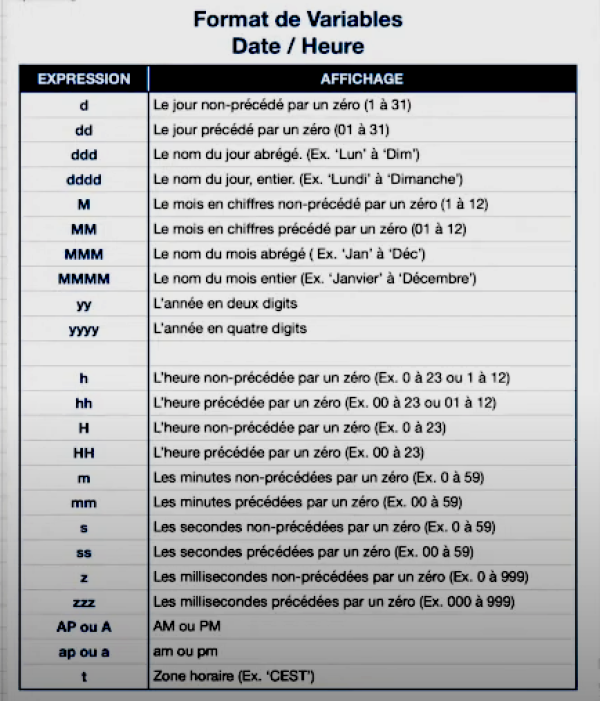Options Dates et Heures