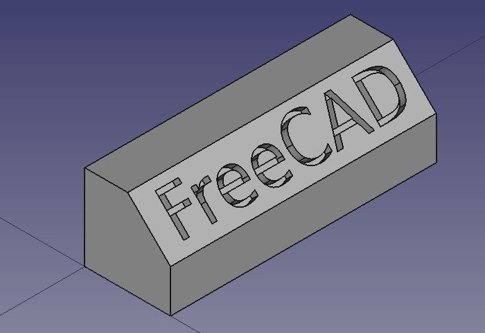 Pour utiliser ShapeStrings dans l' atelier PartDesign, le processus est essentiellement le même que dans l'atelier Part, mais la forme à partir d'un texte doit être placée à l'intérieur d'un PartDesign Corps. Pour plus d'informations, allez à la fin de ce tutoriel.