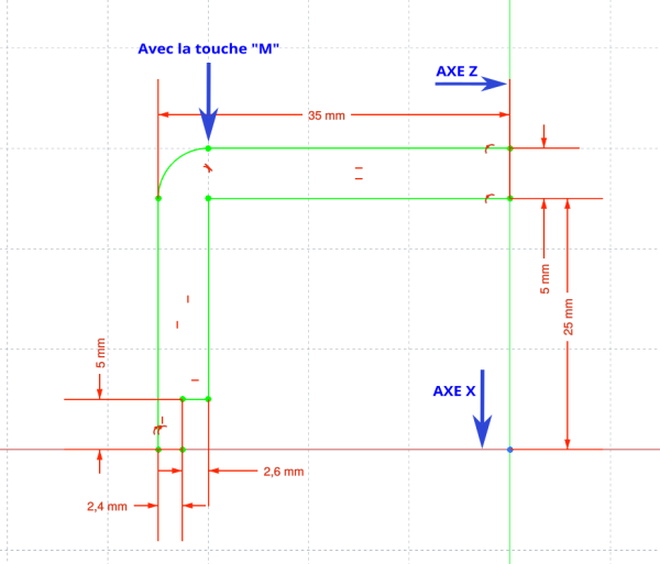 - Utiliser le touche “M” pour créer l'arc de cercle