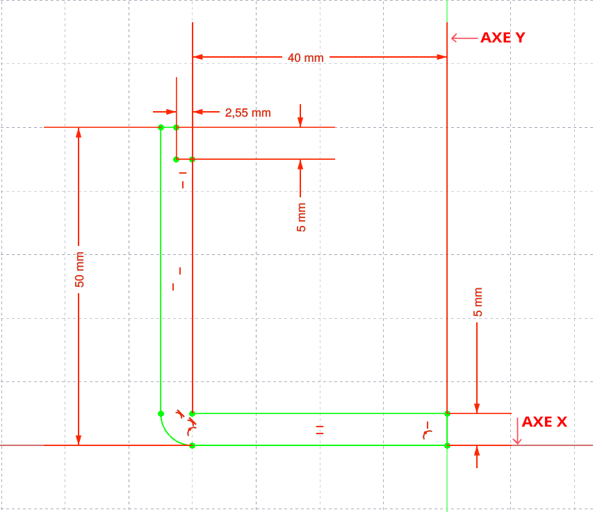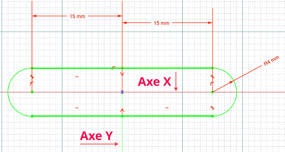 - Donner la valeur de rayon de 20 mm pour l'arc de cercle