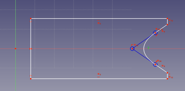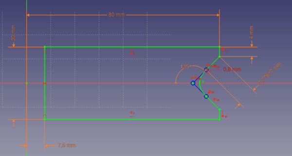 On utilise l’atelier PartDesign, le but est de dessiner une esquisse entièrement contrainte en utilisant les variables définies. On commence par dessiner une esquisse rapide avec la forme générale.