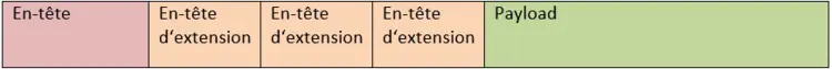| Longueur des données utiles (payload length) | Donne la longueur du contenu du paquet, y compris les extensions mais sans les données d’en-tête (16 bits) |