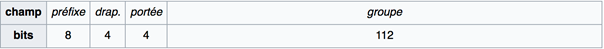 Les adresses de diffusion multidestinataire possèdent un champ Flag (sur 4bits) et un champ concernant la portée (également sur 4bits) suivi d’un champ d’identification du groupe (sur 112 bits). C’est l’un des bits du champ Flag qui permet de distinguer les groupes permanents des groupes transitoires.