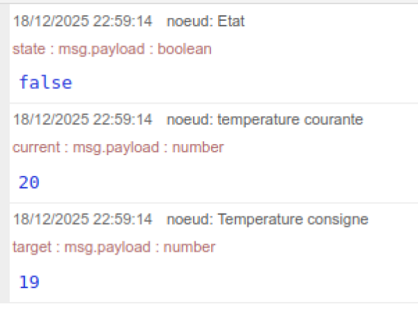 L'état (vrai/faux) sert à commander un actionneur. Les sorties de température actuelle et cible peuvent être connectées, par exemple, à un nœud ui_chart.