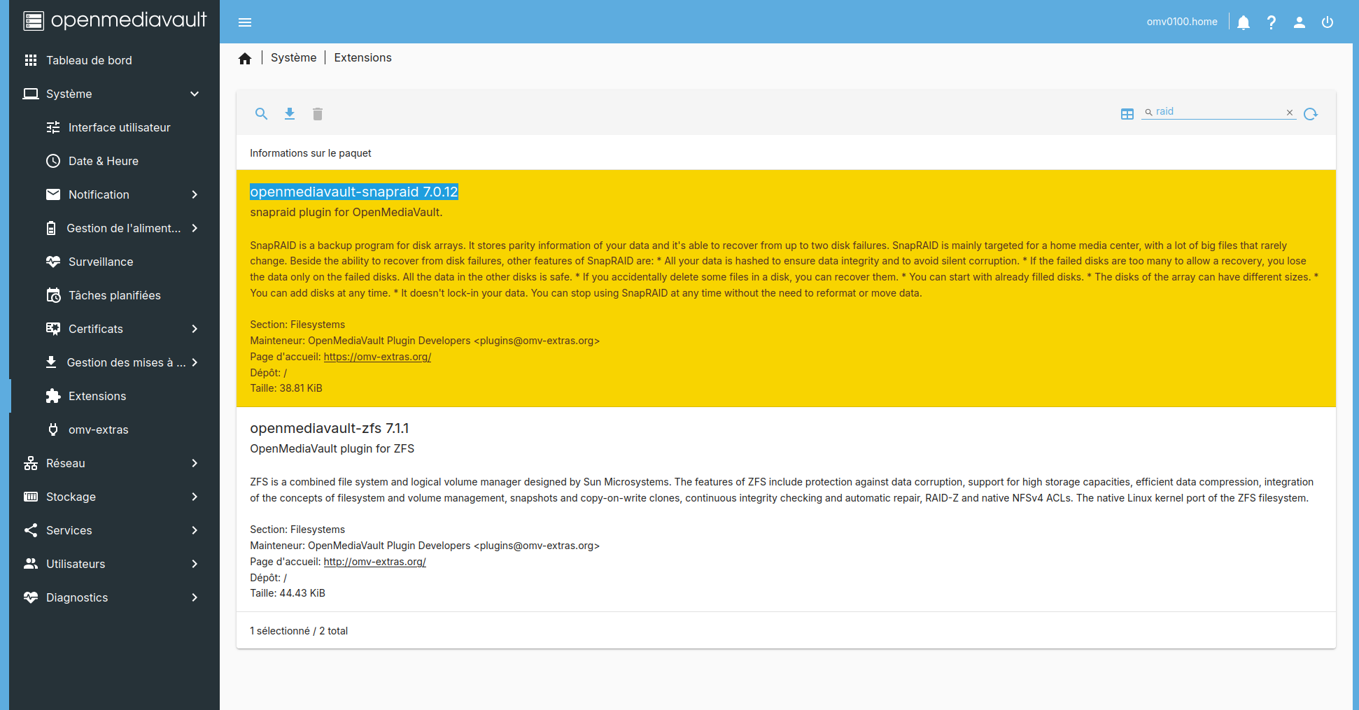 Utilisation plugin openmediavault-snapraid 7.0.12